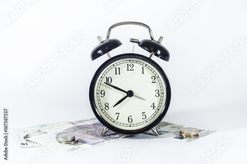 business, concept, money, time, isolated, white, background, idea, finance, earning, cash, old, vintage, alarm, clock, life events, exchange, retro, topview, top, banking, finance, pension