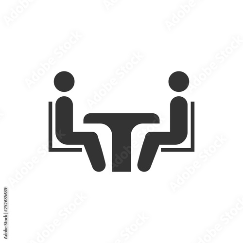 Business consulting icon in flat style. Two people with table vector illustration on white isolated background. Restaurant dialog business concept.