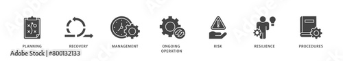 Business continuity icons set collection illustration of management, ongoing operation, risk, resilience, and procedures icon live stroke and easy to edit