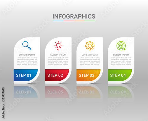 Business data visualization, infographic template with 4 steps on gray background, vector illustration
