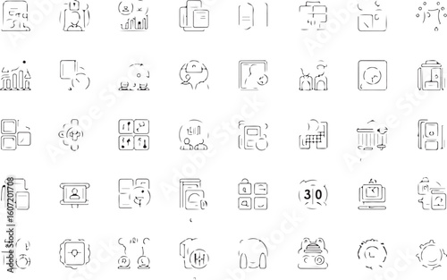 business, finance, technology, icon, datum, people, communication, document, chart, graph, computer, laptop, gear, setting, calendar, presentation, strategy, growth, network, research, development, innovation, digital, abstract, simple, line art