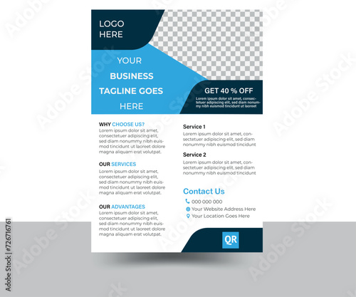 Business flyer, brochure design, magazine or flier mockup in blue & black colors,flyer in A4 size.
