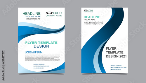 Business flyer layout template in A4 size. Modern Brochure template cover design, annual report, poster with geometric and wavy lines for business market on white background, vector illustration
