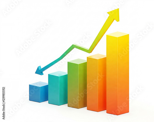 Business Growth 3D Bar Chart,Success and Progress Chart,Economic Growth Data Illustration