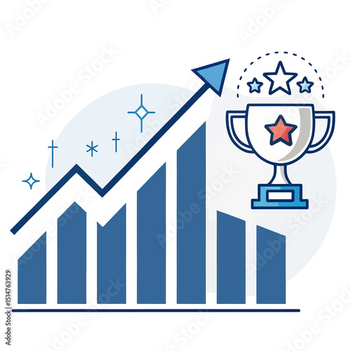 business, growth, chart, trophy, success, achievement, award, winner, victory, progress, increase, rising, bar, graph, upward, trend, positive, development, goal, target, white, background, illustration, graphic, vector, marketing, finance, strategy, planning, leadership, competition, excellence, blue, modern, clean