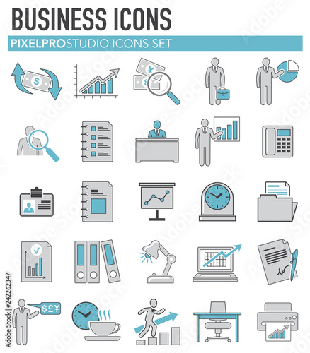 Business icons set bleu grey on white background for graphic and web design, Modern simple vector sign. Internet concept. Trendy symbol for website design web button or mobile app