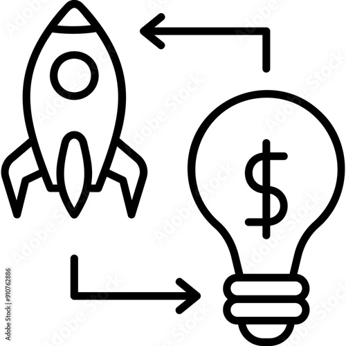 business, incubator, innovation, launch, idea, rocket, dollar, startup, unicorn, exchange, icon, outline, line