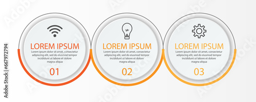 Business Infographic Template Design. Time line minimal concept with 3 option steps and marketing icons. Vector linear infographic with three connected elements. Can be used for your business gifts