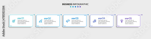 Business infographic template with 5 options or steps. Can be used for workflow layout, diagram, annual report, web design
