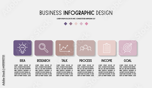 infographic, timeline, 6, option, vector, step, diagram, flowchart, business, element, info, icon, square, chart, process, graphic, workflow, milestone, design, template, number, history, growth, chronology, agenda, professional, marketing, cycle, graph, layout, company, progress, arrow, text, information, pastel, colours, colourful, pink, presentation, modern, choice, concept, flow, background, datum, abstract