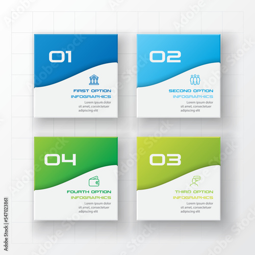Business infographics template 4 steps with square,Element for design invitations,Vector illustration.