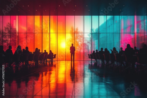 Business leader presenting strategy during team meeting in modern boardroom with diverse professionals