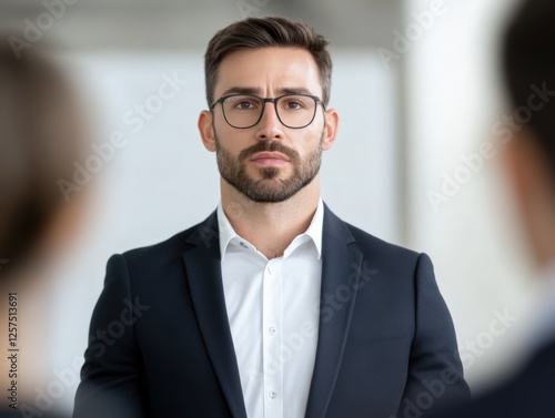 businessman, suit, goggles, portrait, serious, meeting, interview, professional, confident, executive, corporate, businessman, office, adult, indoor, formal, closeup, one person, facial hair, white shirt, necktie, attaching, business, young, caucasian, male, man