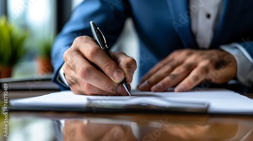 Business man using pen signing, writting