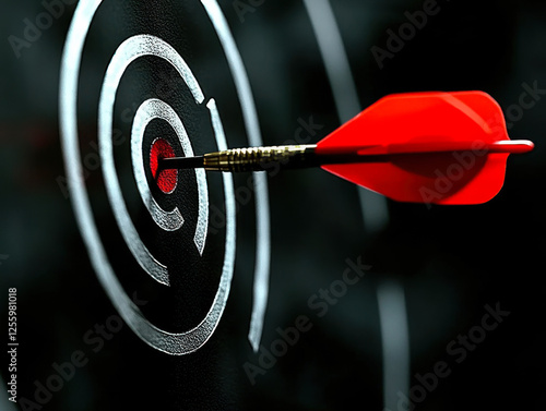 Business marketing success concept. The red dart arrow bullseye in the middle of the dart paper is the goal of the business.