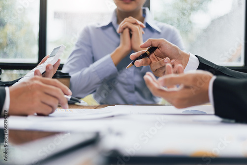 Business meeting, Business partners and colleagues in office discussing strategic analysis and planning business investment projects together.