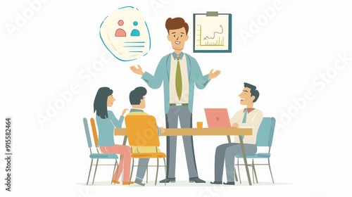 clean, simple, businessperson, meeting room, vector, professional, colourful, innovation, minimal, corporate, graphic, team, teamwork, digital artwork, discussion, business meeting, communication, success, cartoon, workplace, office, strategy, collaboration, growth, creative, modern, presentation, illustration, leadership