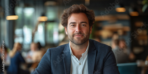 Business meeting with confident male professional modern office portrait photography bright environment engaging viewpoint professionalism and approachability