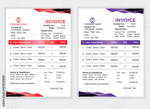 Business Minimal Corporate Invoice design template vector illustration bill form price . Creative template and stationery design payment agreement design template Cash Memo, Vector Quotation Design