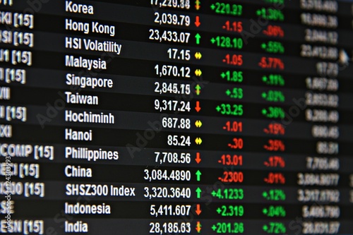Business or finance background : Display of Asia Pacific stock market data on monitor, Asia Pacific display stock market chart