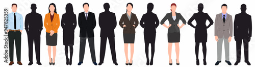 Business people. Businessman and businesswoman working group of people or office workers set isolated vector illustration
