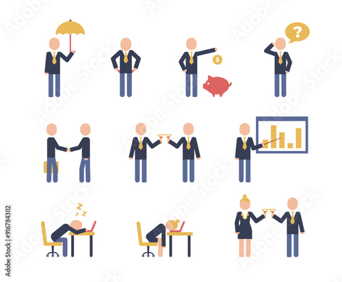 Business people icon pictograms. Leadership training, meeting and corporate career. Modern simple style pictogram concept. Blue color characters set. Simple material design for web and website.