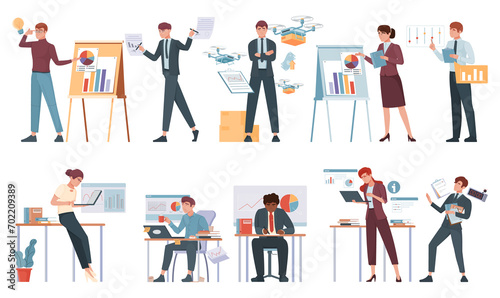 business, concept, modern, creative, technology, character, marketing, corporate, communication, company, network, success, person, equipment, work, strategy, plan, professional, process, interior, research, project, men at work, progress, analysis, achievement, organisation, employee, planning, goal, working, successful, staff, people, man, businessman, indoor, office, room, woman, businesswoman, set, collection, vector, illustration, flat, cartoon, hand, drawn