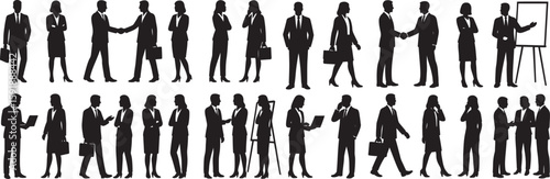 business, people, office, silhouette, professional, men at work, employee, executive, teamwork, leader, manager, corporate, meeting, discussion, walking, standing, handshake, communication, presentation, group, boss, suit, formal, career, success, staff, strategy, male, female, partner, coaching, planning, confident, adviser, laptop, phone, talking, pointing, mentor, entrepreneur, colleague, hr, team, isolated, vector, briefing