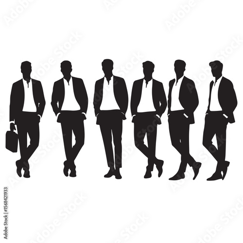 Business people silhouettes: a diverse group of men and women walking and standing, perfect for illustrating a dynamic office team or fashion-con