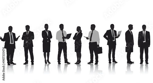 business, people, silhouette, team, corporate, professional, concept, diversity, leadership, management, success, career, office, meeting, communication, strategy, partnership, collaboration, achievement, suit, attaching, briefcase, laptop, tablet, presentation, finance, marketing, sale, human resources, executive, employee, staff, manpower, group, standing