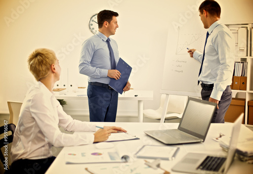 Business people sitting and discussing at business meeting, in office