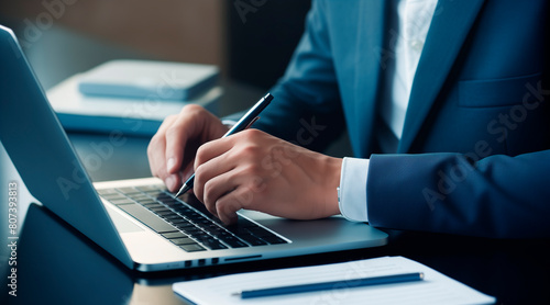 Business performance checklist, businessman using laptop doing online checklist survey, filling out digital form checklist, take an assessment, questionnaire, evaluation, online survey, online exam