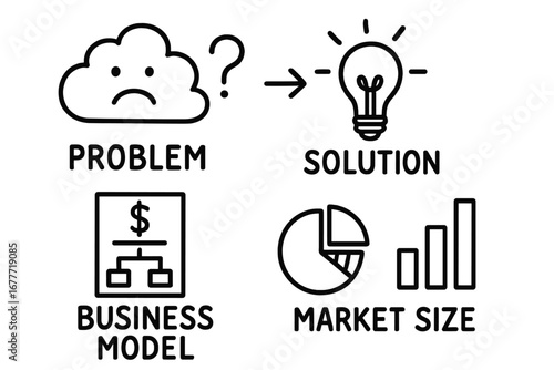 business, pitch, doodle, set, template, hand, drawn, icon, for, problem, slide, solution, visual, model, market, size, isolated, transparent, background