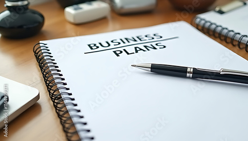 Business plans are often created with a notepad and pen on a wooden table surrounded by various planning supplies._00002_