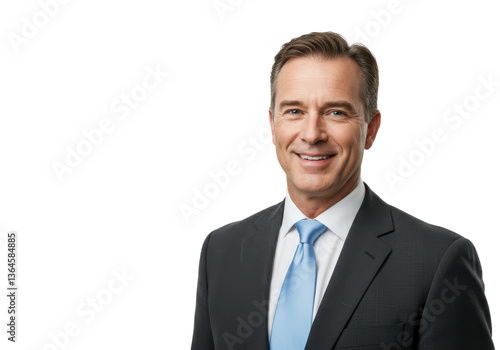 Business portrait of confident businessman. Entrepreneur in jacket and tie, smiling, Happy mid adult isolated on White background