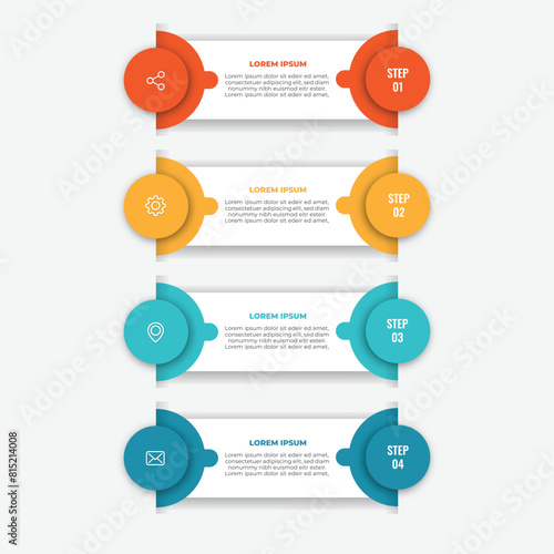 Business process infographic template. Four colourful graphic with numbers 4 steps. Vector illustration graphic design