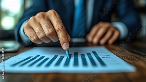 Business professional analyzing financial growth chart with focus on data trends and statistics