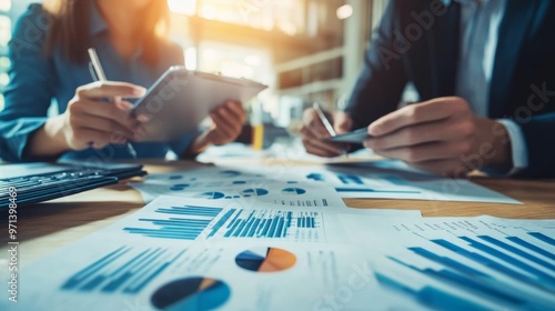 Business Professionals Analyzing Financial Report. Collaborative Discussion