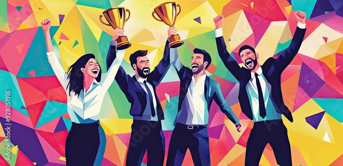 victory, professional, trophy, celebration, success, teamwork, corporate, achievement, diverse, cheering, group, winning, oneness, collaboration, joy, pride, effort, moment, office, motivation, goal, employee, spirit, recognition, happy, pose, story, excellence, triumph, diversity, photo, festive, award, milestone, lift, succeed, business, reward, team, formal, attire, gold, smiling, raised, fist, accomplishment, competition, workplace, leadership