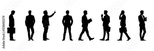 businessman, people, human, icon, vector, silhouette, figure, standing, set, solid, walking, talking, holding, collection, pictogram, briefcase, hot drink, phone, pointing, reading, professional, corporate, office, meeting, communication, interaction, business, occupation, teamwork, leadership, presentation, discussion, colleague, workplace, black, person, filled, glyphs, symbol, signs, flat, isolated, illustration, graphic
