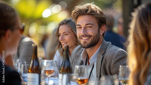 people, co-worker, discussing, friends, wine glass, together, smiling, man, eatery, alcohol, drinking, male, talking