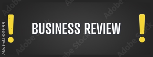 Business Review. A blackboard with white text. Illustration with grunge text style.