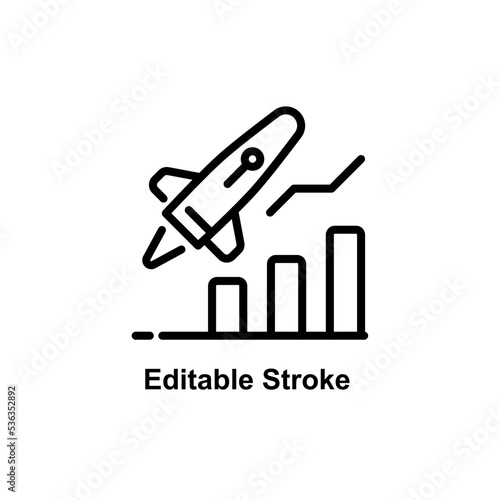 business start icon designed in outline style decorated with rocket icon elements and percentage graph icons in business icon theme