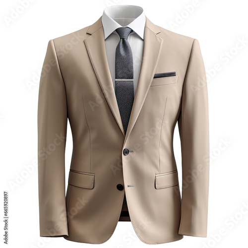 Business Suit with strong lapel collar, Beige suit clean minimalist, Wedding Suit , identification photo ,cut out transparent isolated on white background ,PNG file