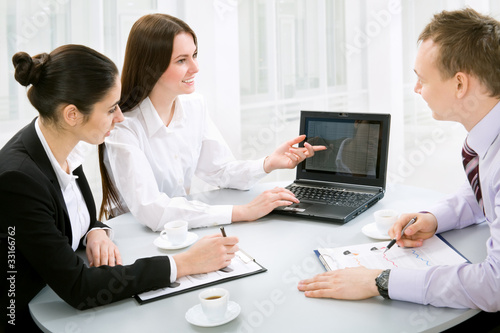 business, businessperson, businessman, businesswoman, people, adult, male, female, woman, man, three people, office, meeting, union, friendship, benevolence, cooperation, partnership, success, oneness, working, caucasian, job, communication, well-dressed, well-being, suit, professional occupation, executive, positivity, pointing, explanation, teaching, training, report, writing, computer, pen, tied-up, discussion, workgroup, planning, education