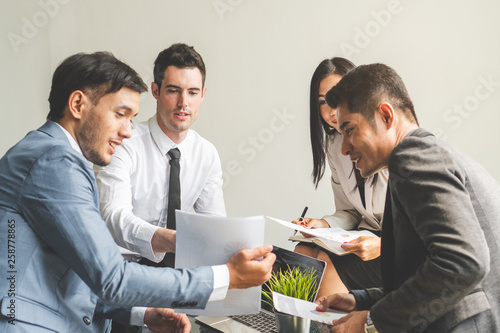 Business team casual meeting and discussing in workplace.