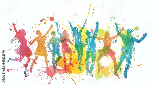 business, success, doodle, art, vignetting, figure, hand-drawn, white, background, applause, office, party, informal, atmosphere, colourful, copy, space, team, achievement, happy, joy, excitement, corporate, teamwork, reward, accomplishment, enthusiasm, casual attire, playful