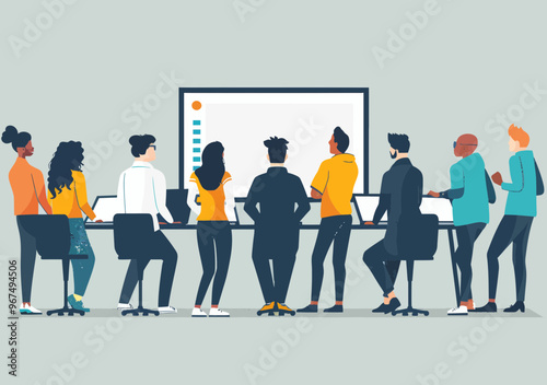 Business Team Engaging in a Learning Presentation with Teacher in Minimalistic Vector Illustration, Concepts of Education, Professional Development, and Corporate Training