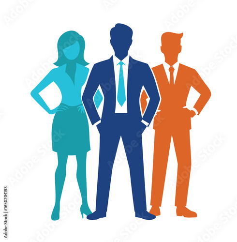 Business Team Silhouette Illustration – Standing Male Figures on Ground.