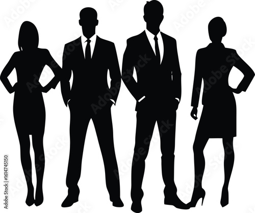 Business Team Silhouette Two Men in Suits and Two Women Standing Confidently Together